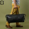 - Stylish, high-quality leather travel bag with a rugged yet elegant design