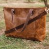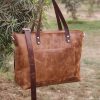 This handcrafted leather tote bag combines functionality with timeless style, making it an excellent choice for daily use or as a thoughtful gift.