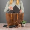This handcrafted leather tote bag combines functionality with timeless style, making it an excellent choice for daily use or as a thoughtful gift.