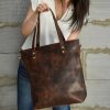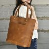 This handcrafted leather tote bag combines functionality with timeless style, making it an excellent choice for daily use or as a thoughtful gift.