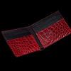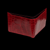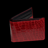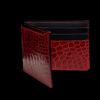 - Handcrafted with glossy alligator leather in an elegant dark red shade.